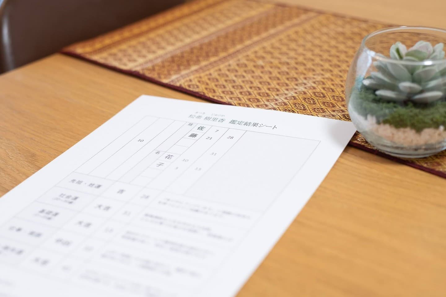 私の占術は、内面性まで鑑定する姓名判断に加え、陰陽五行、手相、風水など、多方面から鑑定するため、生まれ持った特性や運勢なども導き出されます。