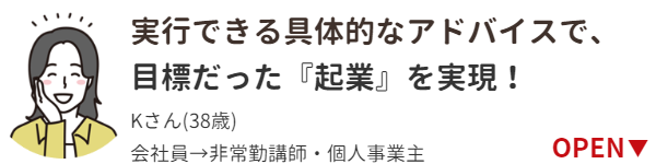 いただいたアドバイス等を実践していたところ、初めての鑑定から1年経たない内に、会社員を辞めて、目標だった起業をすることが出来ました!