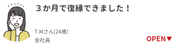 彼に連絡をすると良い日にちや連絡頻度まで、具体的に教えてくれて、実際に連絡を続けていたら、鑑定から約3ヶ月後に復縁ができました!